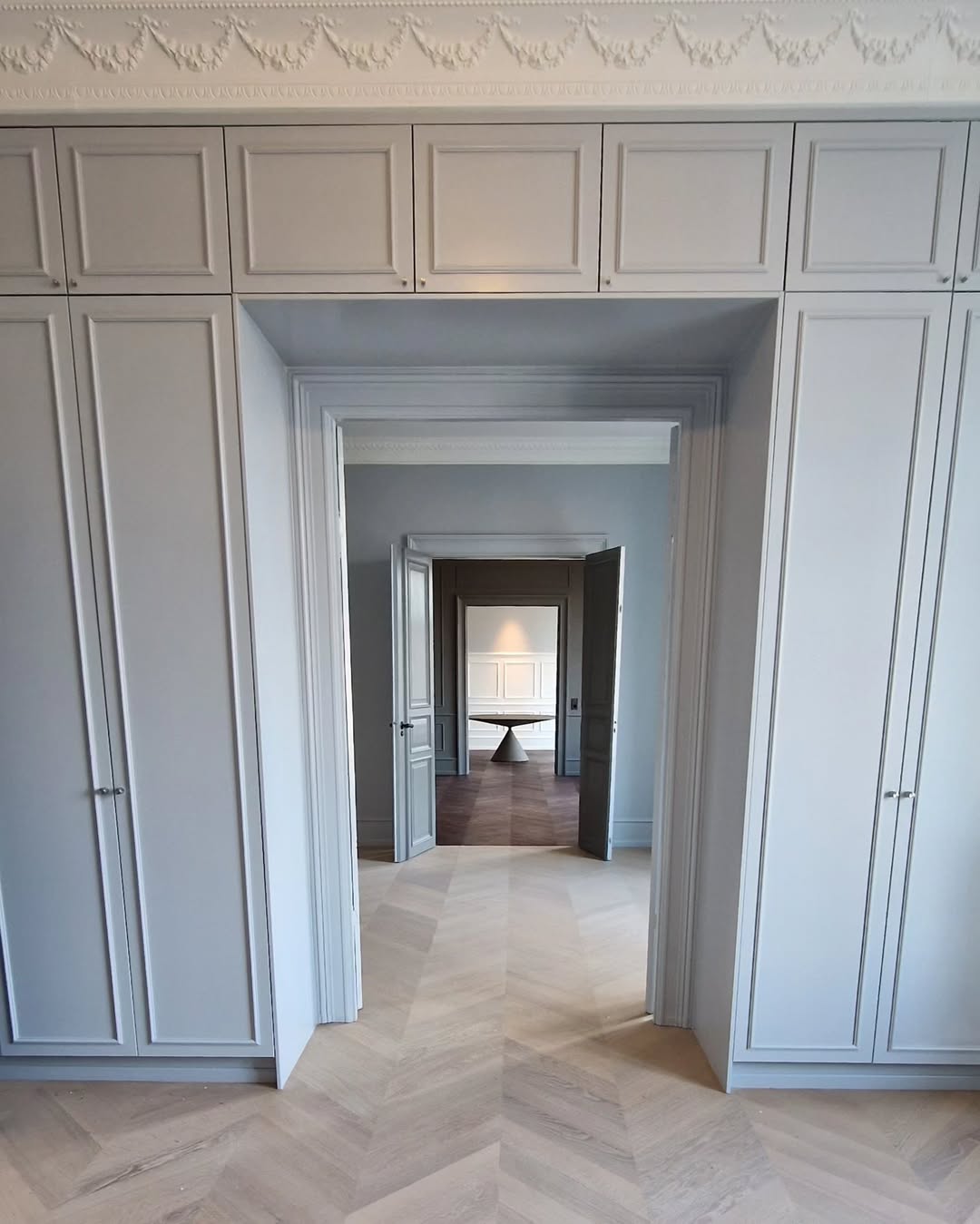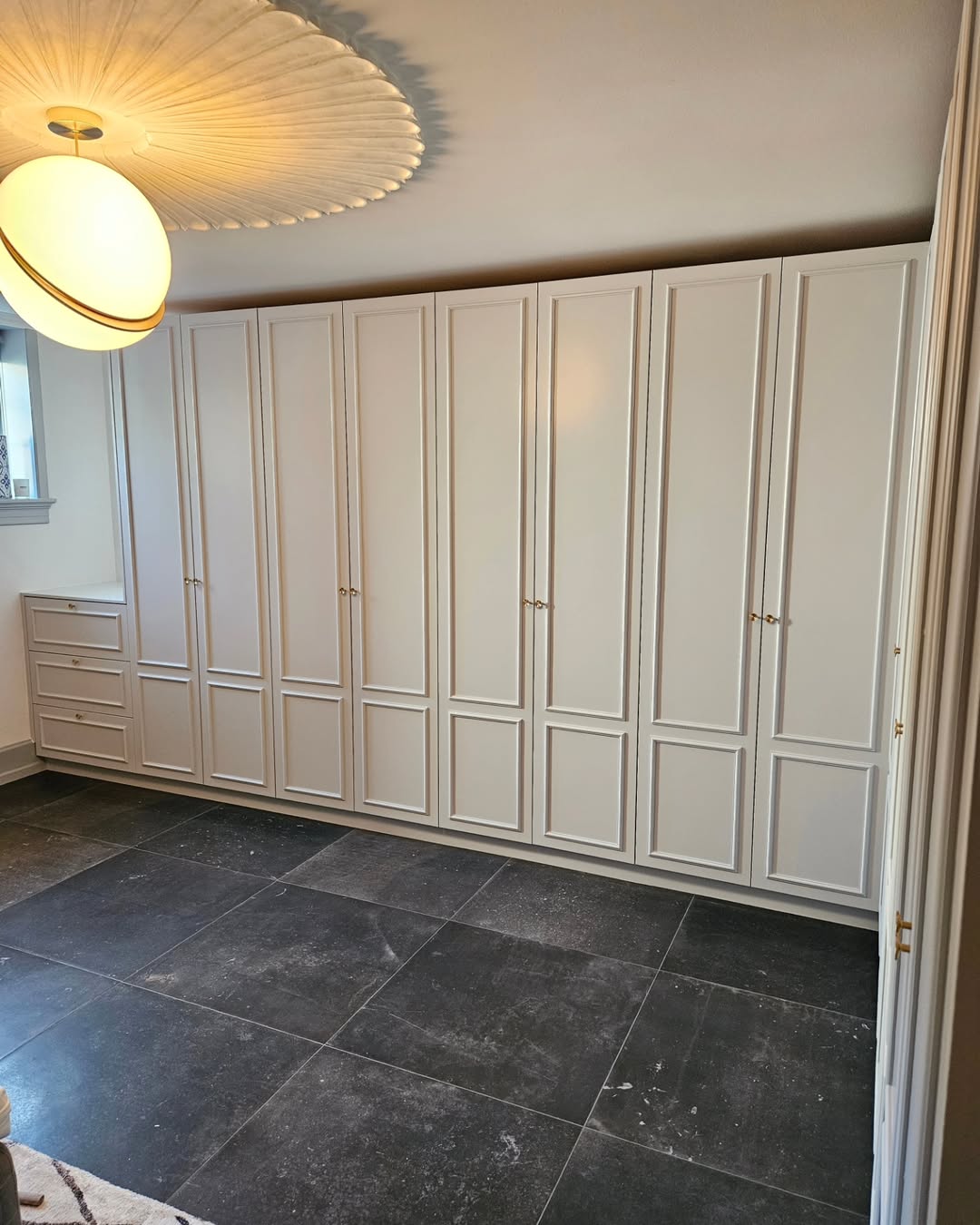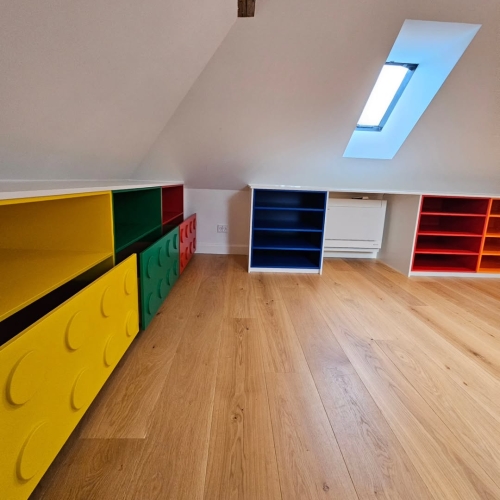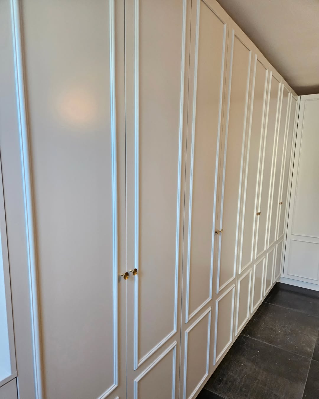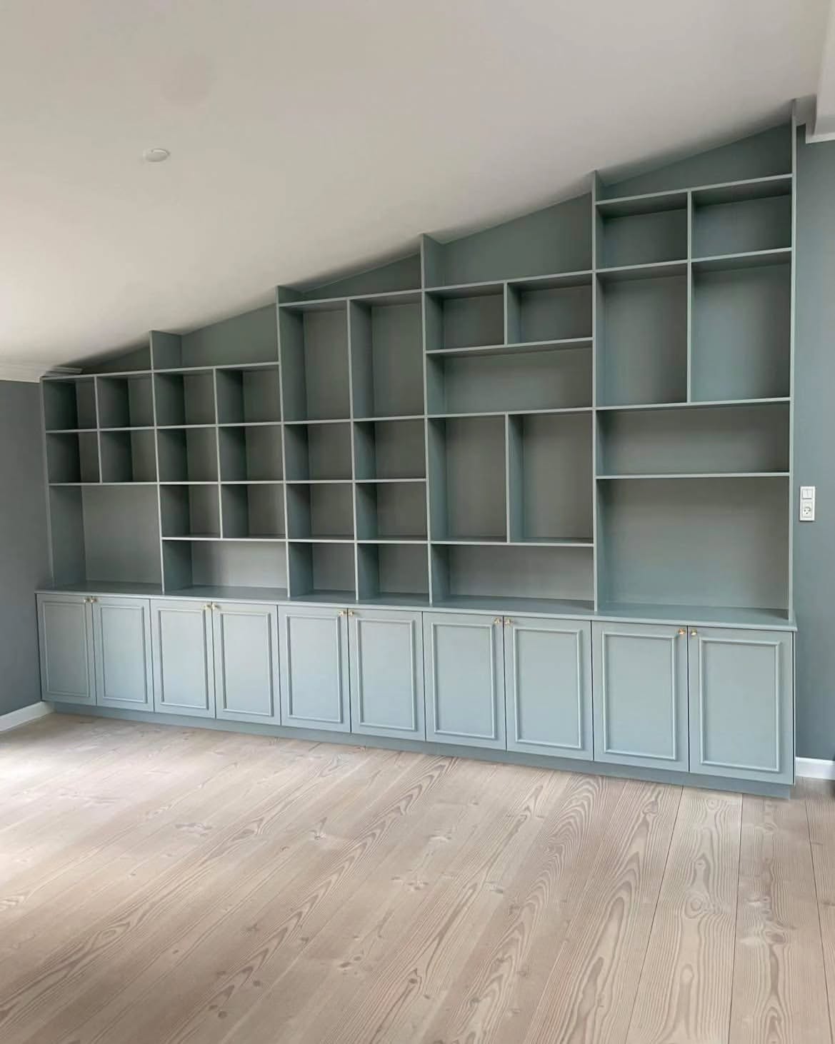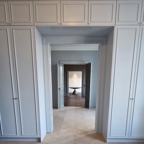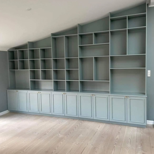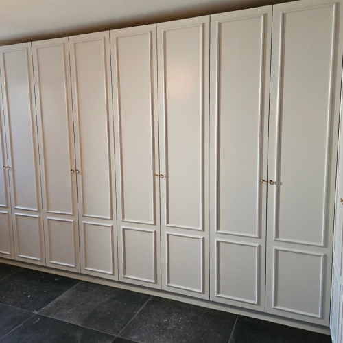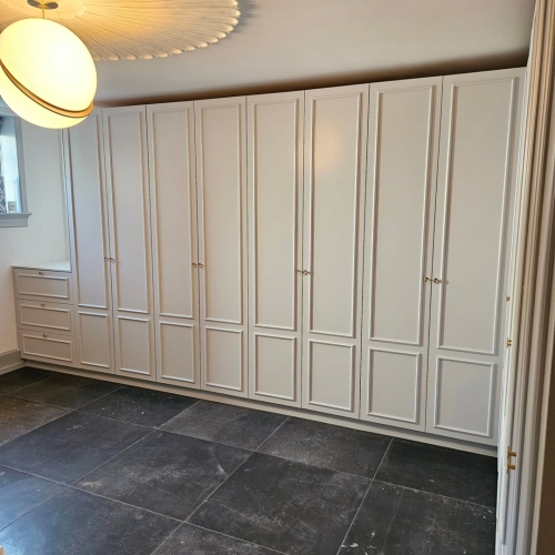 Forskellige reol- og garderobeløsninger blev malet med fokus på en ensartet og slidstærk overflade. Opbevaringsmodulerne fik et opfrisket udtryk, der harmonerer med rummets øvrige indretning.