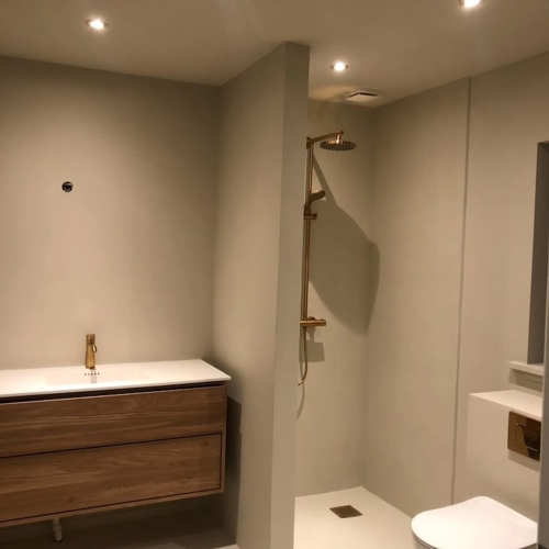 • Microcement og dekorative belægninger i køkken, bad og opholdsrum